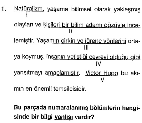 Edebiyat akımlarından LYS’de her yıl ortalama 1-2 soru gelir. Bu akımlar aslında günümüz dünyasını şekillendiren insanların sanat zevklerine yön veren sanat, zevk ve estetik anlayışlarıdır. Yani bu konuyu sadece sınavda çıkıyor diye bilmek son derece yanlıştır, bu aynı zamanda bir genel kültür meselesidir. Aşağıdaki testlerin içeriği: Klasisizm, romantizm, realizm, Dadaizm, sürrealizm, parnasizm, natüralizm, sembolizm, emresyonizm vs